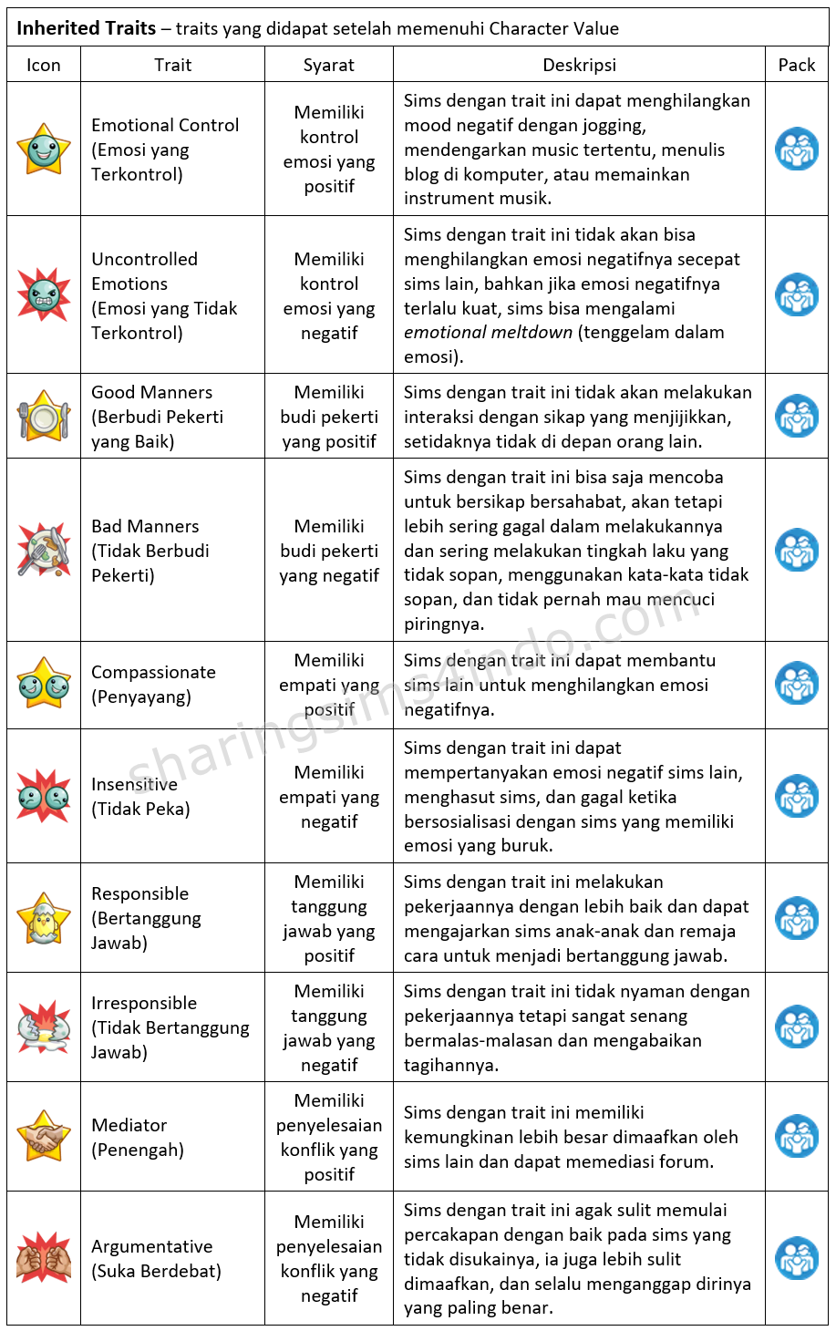 The Sims 4 Parenthood Character Values Guide